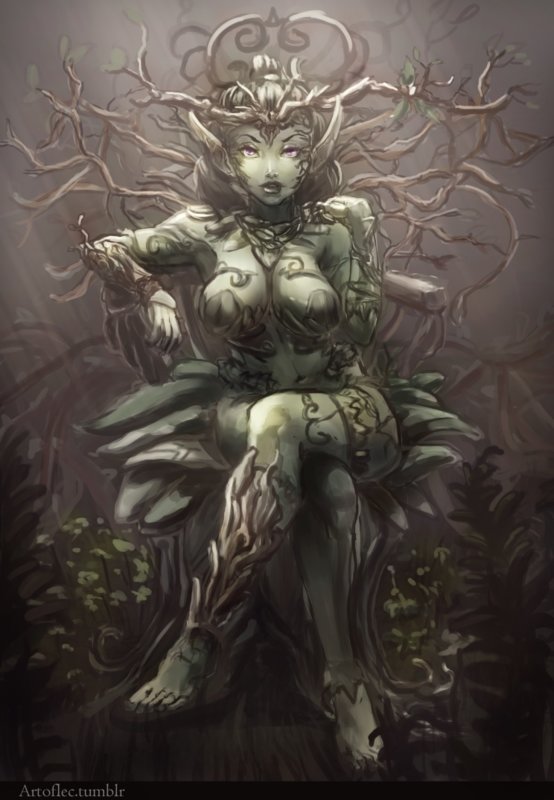 He realized he was sinking, being accepted by the earth into a shallow grave. The light was fading as he sunk deeper, face held firmly in place by the Dryad that consumed him. “Behold me.”