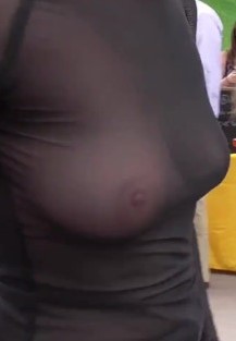 I found a seat facing Meg so I could watch her. The four of them looked like they were having a good time. Meg didn’t seem worried that her breasts were on show. I had almost finished my beer and was ready to leave when I saw Meg push her skirt along her thighs. She wriggled around some, and her panties traveled down her legs and over her feet. Meg glanced over at me quickly and handed her panties to Daniel.