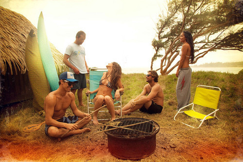 Arriving back at the campsite they pulled the boat in and lowered the awning on the motor home, while Jean and Susan are inside fixing sandwiches and tea and coffee. They soon have the fire going brightly, and there are hotdogs and marshmallows for whoever wants them. By now the girls have changed into shorts and halter tops and are chatting back and forth, yelling at the guys to hurry up and eat so they can all fish.