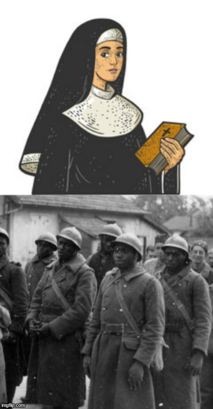 She gracefully rose from her desk and welcomed the Senegalese Sergeant as he walked into her study after Sister Martha, who promptly left. She instantly took note of his horizon-blue trench coat with a matching steel helmet, still wet with melting snow. His collar wore the number “21” in black characters.