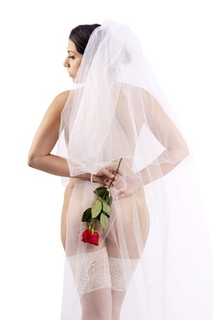 “Joanna!” I hissed. I had, in a moment of boozed honesty, confessed that I had bought crotchless white lace panties with matching halters, a half-cup bra and pretty white bows with soft clamps to wear under my wedding dress. I really wanted to give Andrew a nice surprise on our wedding night, and I knew that he loved it when I dressed up a little naughty.
