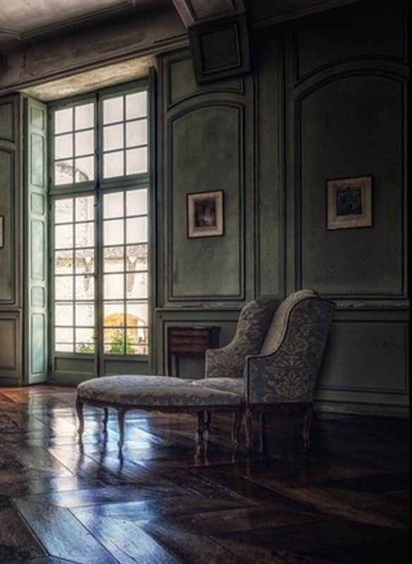 We pass the bartender and the waitress pushing a cart laden with fruit, crackers, cheeses, and little fancy cakes on our way out the door. Ian takes my hand and we tour the rooms on this floor then head upstairs. Here the rooms are smaller but the views are better as the light leaves. There is a door at the very end of the hall that leads into a very small sitting room, just two soft chairs and a divan arranged near one small window. Ian closes the door behind us. He locks it.