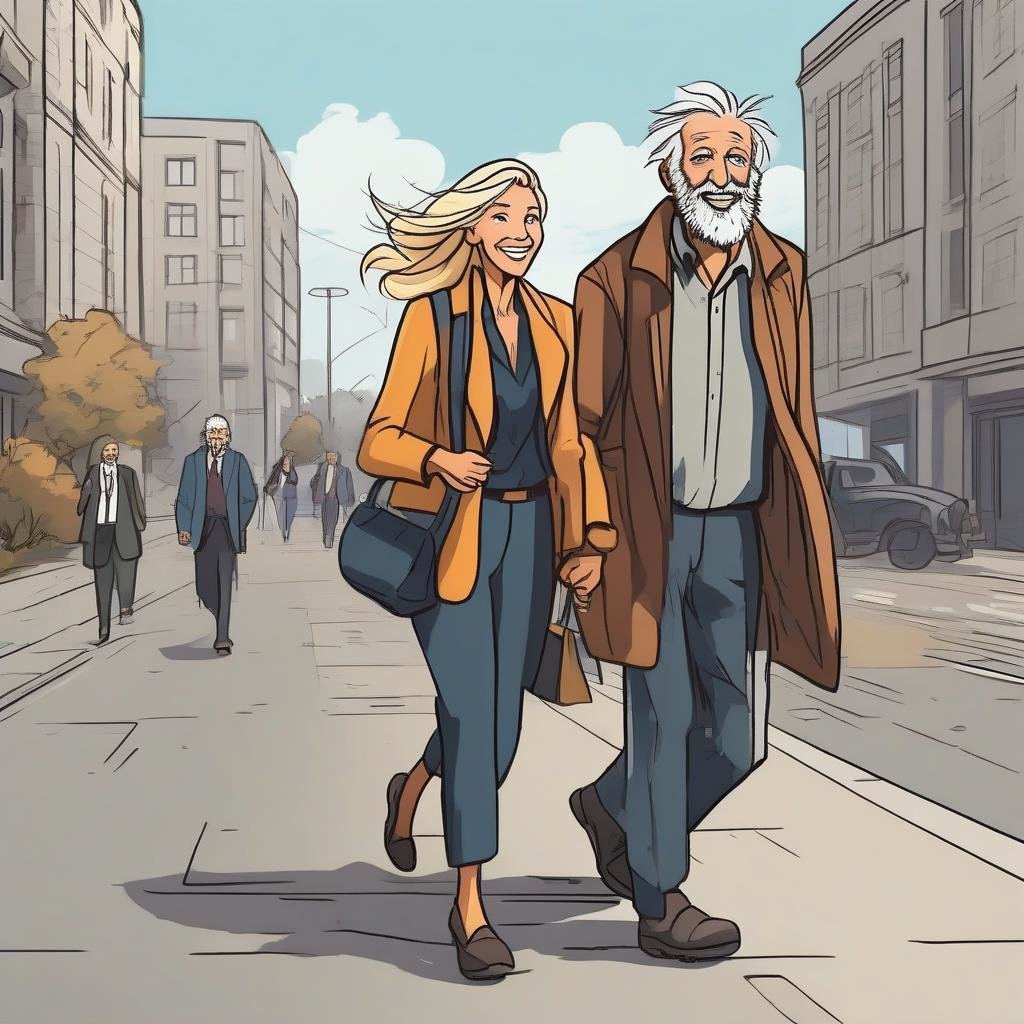 Michelle, clad in her impeccable power suit and carrying her briefcase, scanned the gloomy alley. Her gaze settled on an ancient man curled under a tattered blanket, with a wrinkled face concealed beneath a scruffy beard. With a sinister grin, she sauntered towards him.