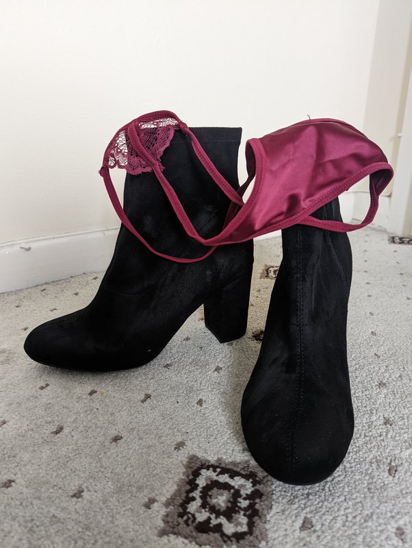 “Erm, yeah it’s fine. It feels more comfortable than I imagined. It’s a quite soft material. It feels like I’m not wearing any holdups and knickers aren’t too small.”