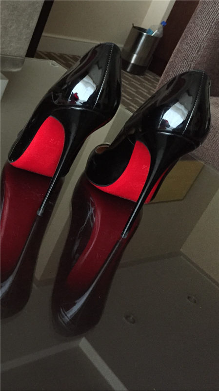 As the video concluded, Eric and Amy were encouraged to change into their club attire for the evening, which they actually were already wearing, though hidden by their outer garments. Eric sported a pair of leather Jim Morrison pants and a polyester shirt with a mink v-neck collar, black skate shoes, and a thin chord necklace with a small medallion. Amy wore her favorite red and black steel ribbed corset, black thong panties, black sheer stockings, and a brand new pair of $800 Christian Louboutin black pumps with red soles and a 5″ stiletto heel. A black wrap around dress with a waist sash covered her perfectly, keeping the secret of the naughtiness that lay beneath, while still showing off her generous curves.