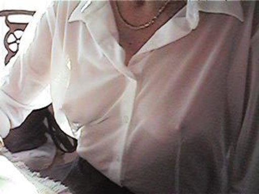 She said, “Look I took my bra off. You can’t see my tits like yours, but I think you can see the outline of my nipples. What do you think?”