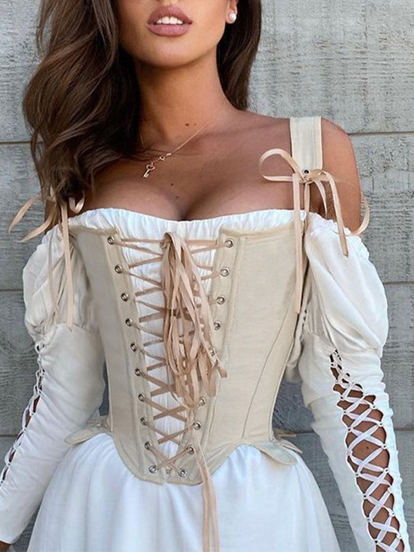 “We’re here by ourselves,” I said, pulling the string at the top of my bodice. My ample tits pushed out toward him.