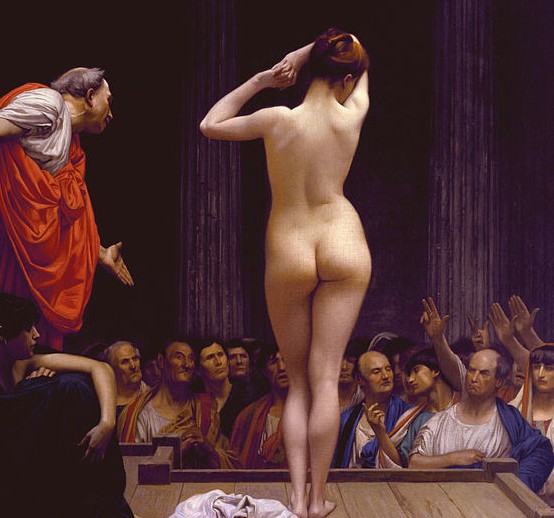 “I mean, like, I wish I was really being sold, auctioned off. You know, I looked it up. In ancient Rome, slaves were auctioned, in public, naked! And they had to do everything their master asked. Everything. Wouldn’t that be so hot!” Kim closed her eyes and crossed her legs again, clenching her thighs around her thickening pussy lips.