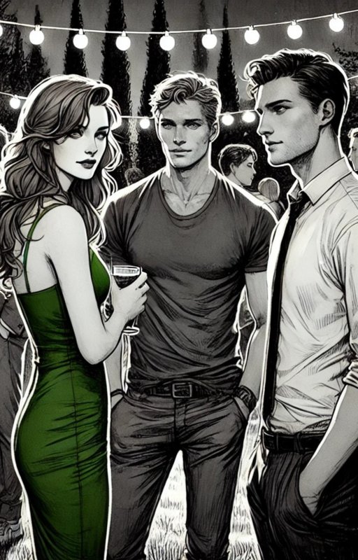 The garden had taken on a new, almost eerie quality as the four of us gathered. The string lights overhead cast flickering shadows through the trees, and the laughter and music from the party now felt distant, like we were in a different world entirely. I would have liked to stay longer, soak in the atmosphere, but Marco needed his friends more than I needed a quiet moment alone.