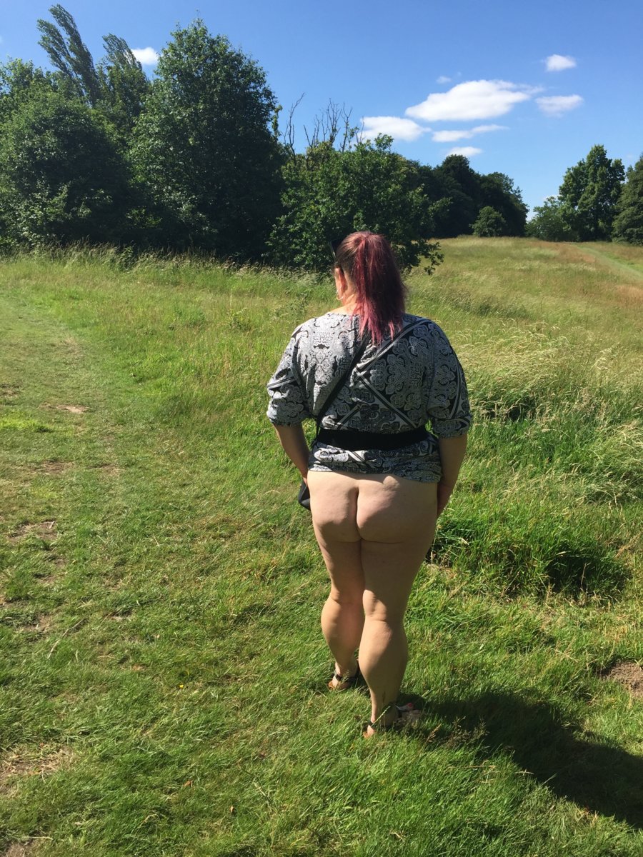 Then I stand you up, holding your hands tightly in mine and smooth your dress down over your waist where it had stayed, ridden up after the last encounter. You feel someone take the blanket off the tree and I lead you forward. I turn you to face me although you can’t see anything and I take the front of your dress in one hand and slide it down, over your breasts and down, right down to your ankles. You’re completely naked and you can’t see a thing. I grasp your hands again.