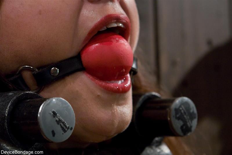 He turned the fucksaw on again and was soon up to full speed. Barb’s hips were entirely off the table as her arousal built. Ari tugged on the cones extending her nipples, pulling them up as he began slapping the undersides of her breasts. He leaned in and whispered something in her ear, and she shook her head no. Ari nodded to him to continue fucking her. Barb’s entire body was off the table except for her head and shoulders. She was jerking up and down, and her moans were almost a scream. She was covered in sweat. Ari signaled to the man, and he stopped the fucksaw and pulled it from her. As he did, streams of urine squirted from her pee hole.