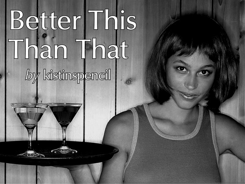 “Big brandy for her, club soda for me,” Miss murmurs in passing.
