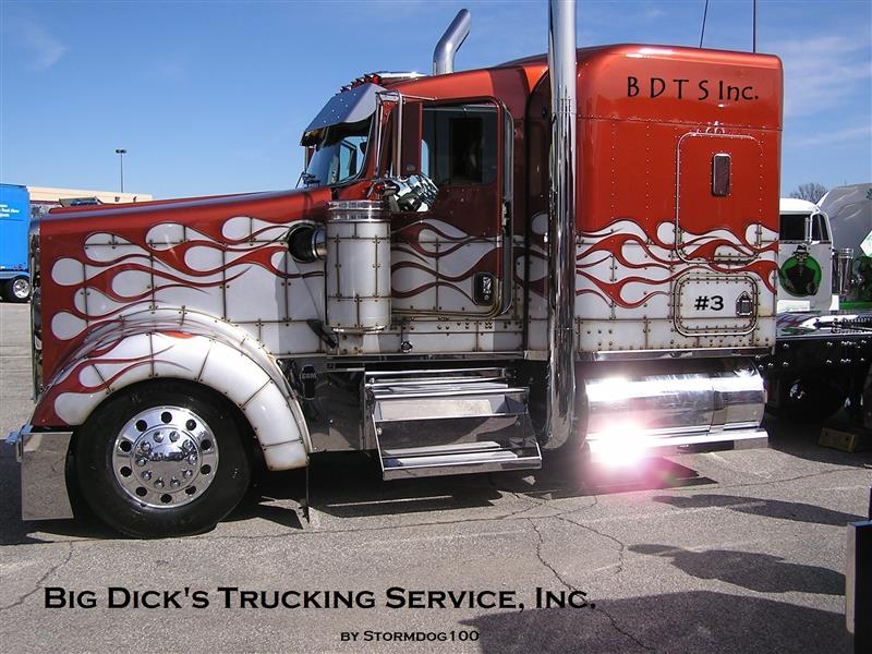 It was full-custom, slathered in chrome bright work with tall stacks on each side, and had every sparkly bit, extra running-light, marker light and anything else you could imagine. I whistled long and low as I read the company acronym, ‘BDTS’, at the top of the sleeper berth. “Wow! That’s quite a ride. Someone spent some serious bucks on that paint job and all that bling!”