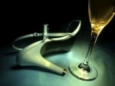 As soon as he turns around, he almost drops the glass which he was holding out to her.