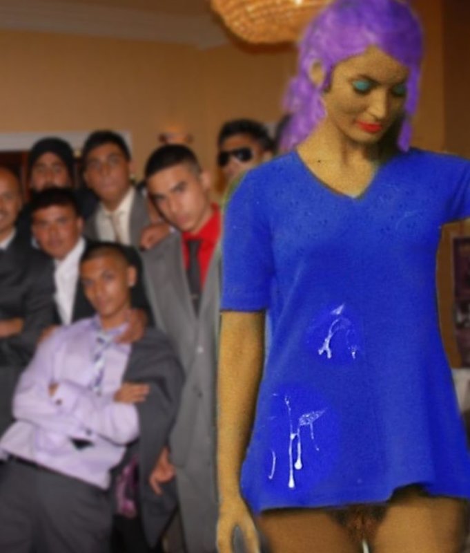 Ahmed’s father took me to the party room. On stage, he said, “My dear friends, thank you all, that you have made Princess Andrea a real dirty whore. She will never forget you and will be grateful to all of you. You can use her day and night and she will be our Maghrebian breeding slut. She will give birth to a black child, where someone of you is the unknown father. Andrea, you walk now at home in your slutty cum covered dress, so everyone recognises you as the white trash fuckpig whore of the Maghrebian.”