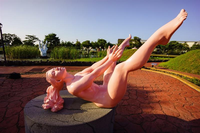 The only rule in the park is “No Sex Allowed”. Even though it’s a sexual style theme park, fornication is not allowed. There are several hotels outside of the establishment in case you need to take care of business. We walked through the park looking at all the amazing statues. There were mounds of beautiful flowers in the shape of breasts. Statues of penises all over the park. Women that were on their knees naked with their asses held high in the air. You could stand behind it and look like you were fucking the girl.