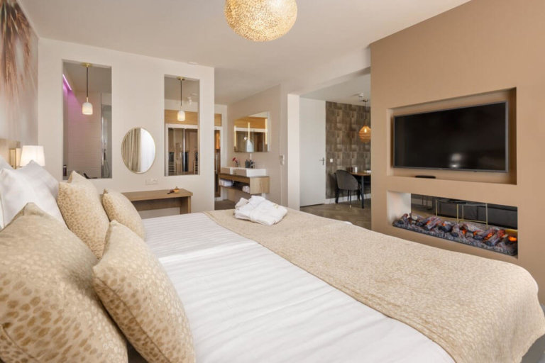 On this crisp morning, the sun illuminated the modern hotel through its large windows, casting a warm and inviting glow on everything it touched.