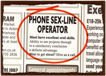“Just do the best you can. Your title is ‘Phone Sex Actress’, so ACT! Anyway, I’m pretty sure he can’t speak a word of French,” said dispatch disinterestedly.