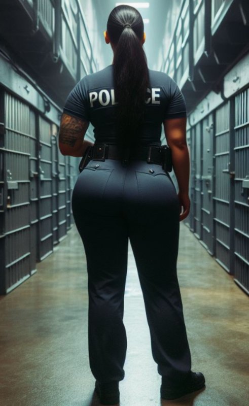 She slammed the cell door behind her and the hulking offender let the words die in his throat as he watched in slack-jawed disbelief; Kaya’s skin-tight uniform pants were peeled down past her waist before 6571 could even think of anything else to call her. Fat, puffy pussy lips and a tangled nest of straight, dark pubes sold out the lie of her blonde dye-job, and her wide hips jiggled with the telltale pocks of cellulite beneath rippling flesh. He wasn’t sure he could get both arms around her ass if he tried.