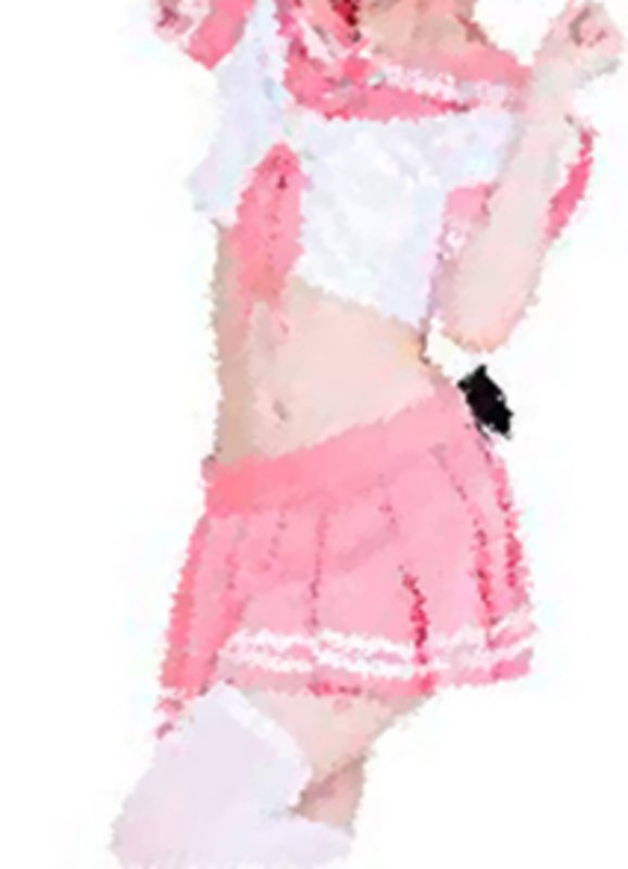 Heather was wearing a plaid, pleated pink miniskirt and white nylon thigh-highs. Her top, a sailor’s uniform top with a tie, was cropped enough to show her belly button.