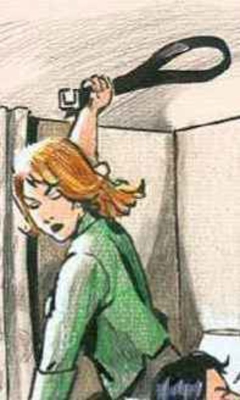 “Oh dear – I’m afraid you’re going to have to attend our next meeting standing up,” she said, tapping the strap wickedly against her hand.