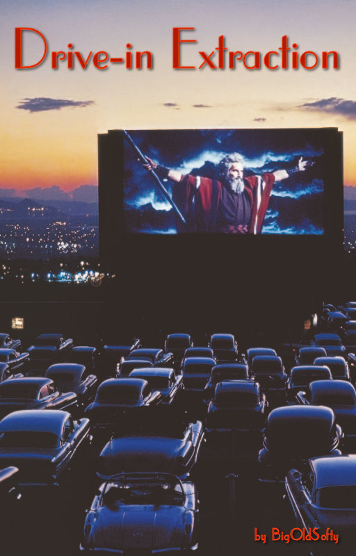 Stretching out along the front bench seat of the old car as she mounted him for a ride to heavenly heights, his foot had become firmly wedged in the glove box;. The projectionist assisted in its extraction after closing.