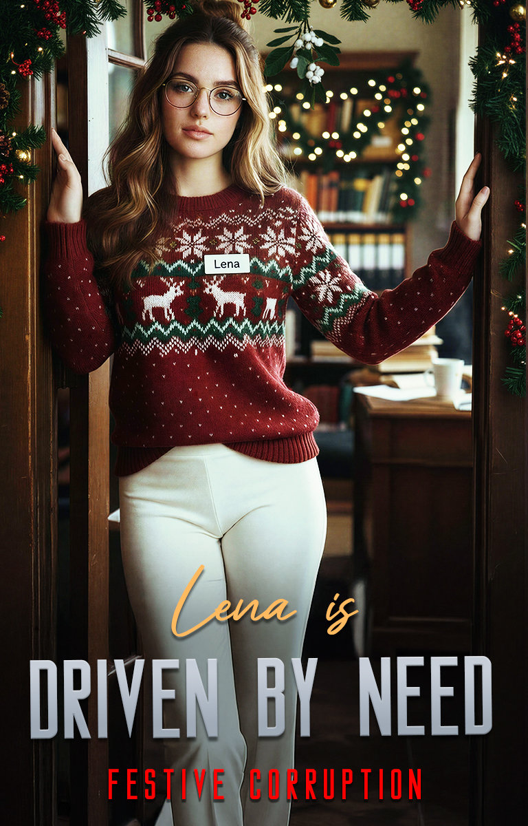 The back office was small, cluttered with stacks of books. Lena barely had the door closed before Walter spun her around and pressed her front-first against the desk. Papers scattered as he shoved her sweater up, mouth hot on the back of her neck.