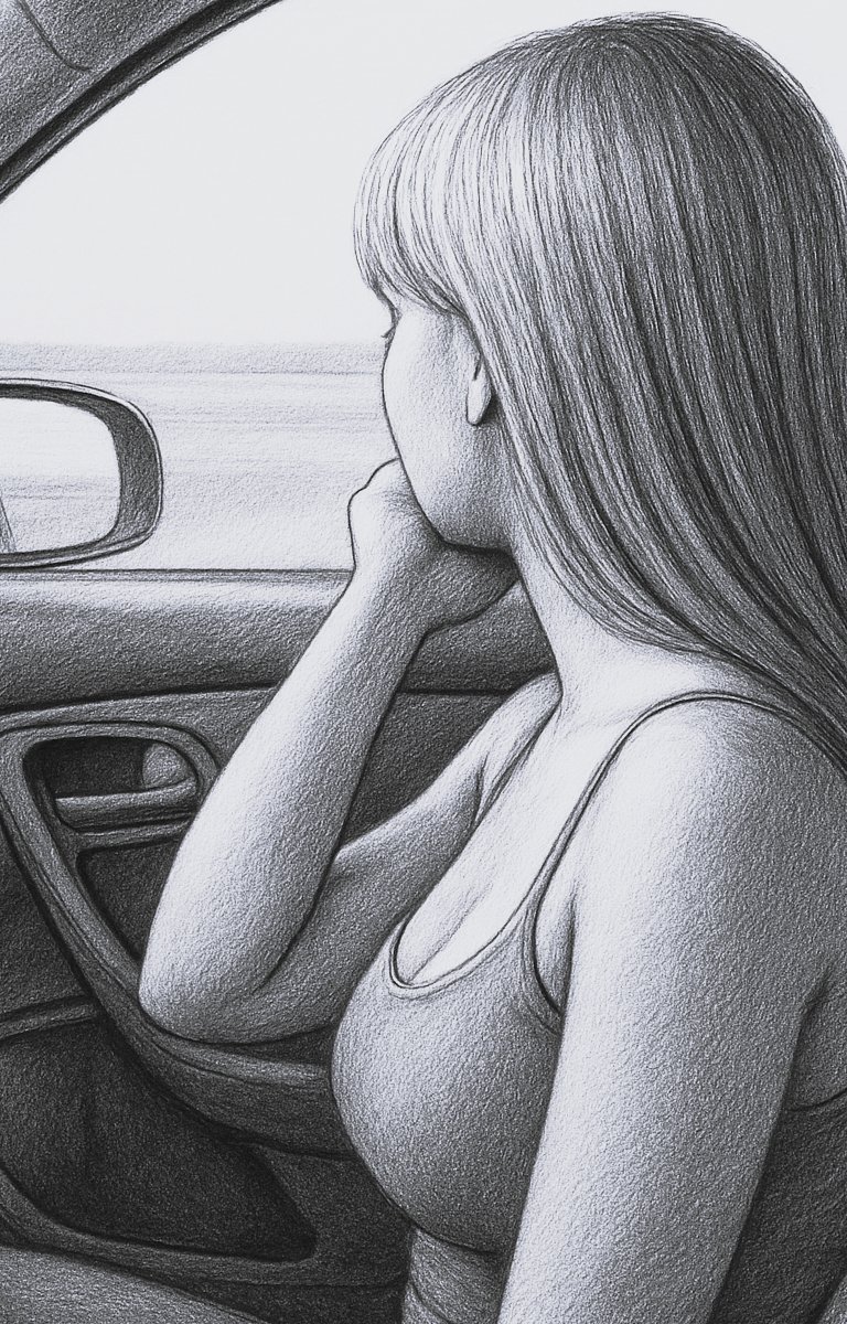 The only sounds inside the car come from the engine, the tires humming against the asphalt, and the occasional uneven patch in the road. I focus on driving, and Maddie leans away from me, her forehead against the glass, looking out.