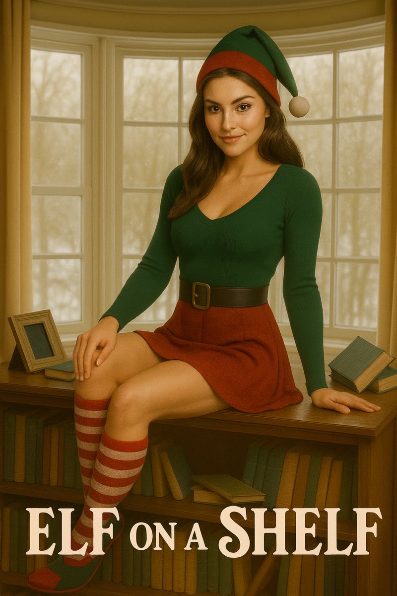 Later that evening, I was relaxing in my study, enjoying a bourbon and a good book. There was a knock on the door frame. I looked up and saw Evelyn. My jaw dropped. She was wearing a sexy elf costume, hands behind her back.