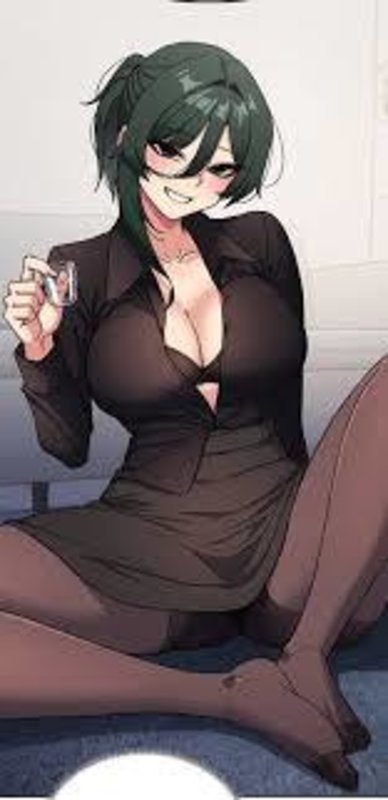 Yoonda stepped out into the hallway. Her heels clicked softly against the floor, and her keys fell with a jingle onto the tiles. Her makeup was slightly smudged, and her green hair was tied back in a messy ponytail. Her black jacket hung open, revealing a low-cut top that clung tightly to her body. Under her short skirt, her sheer stockings were already torn from the chaos of the day. She didn’t even knock.