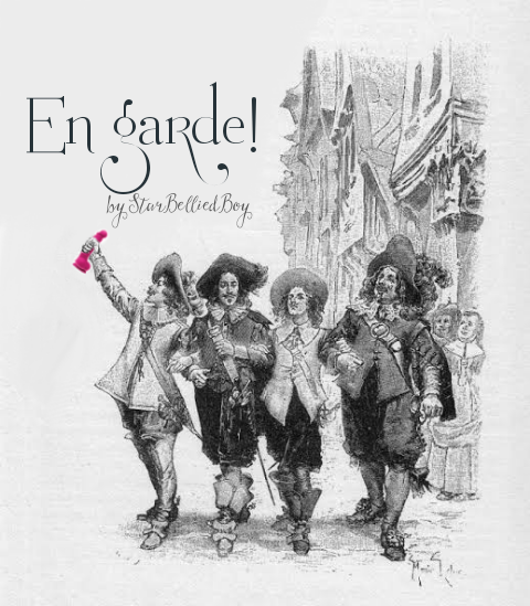 Porthos’ purple point grazed Aramis’. Grips tightened, drawn together, corps-à-corps. Lips mashed, moustaches tangled. Their duelling pink épées wrestled in their fist-sheath.