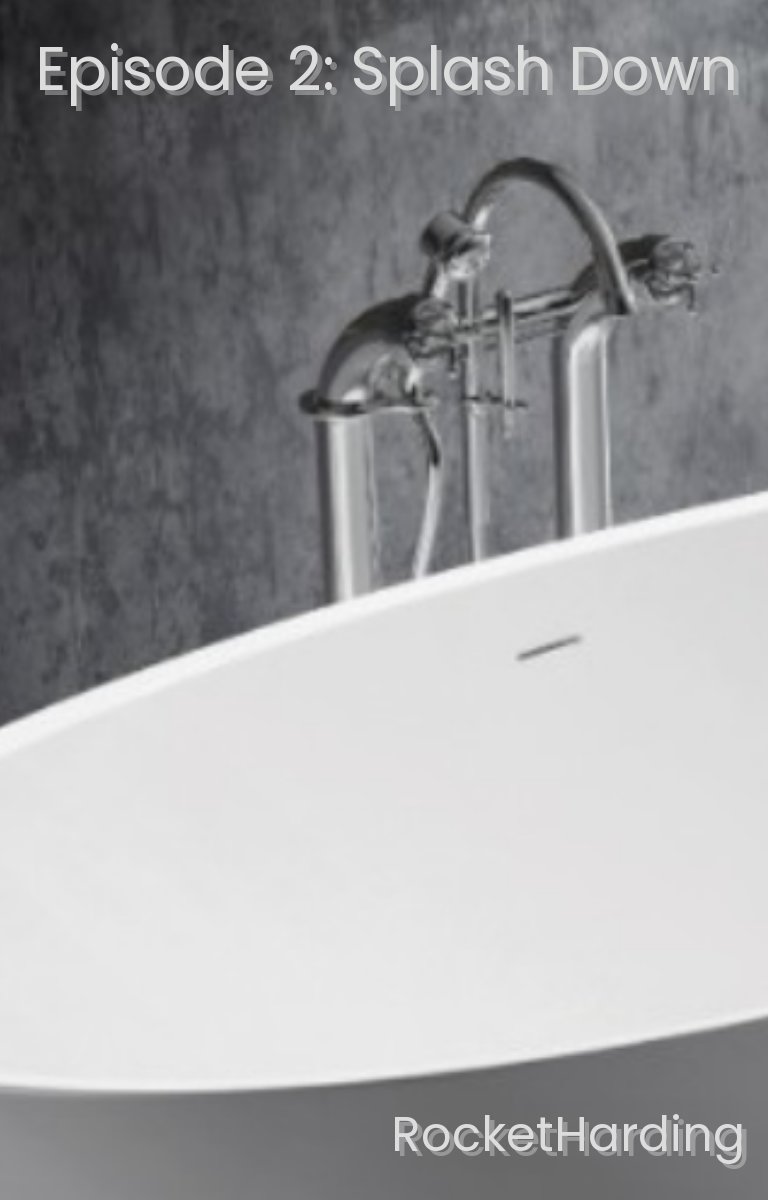 Izzy came out of the bathroom wrapped in a robe provided by the hotel. She looked around the corner and said, “Woo-hoo, Rocket! A hot tub!”