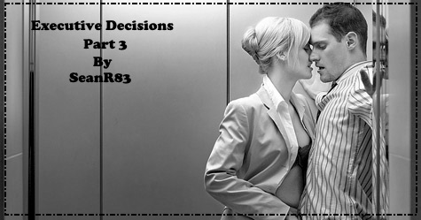 They stepped into the elevator together and once they started to move she pressed the stop button. The elevator came to a stop and he gave her inquisitive look. She smiled and opened her jacket and unbuttoned her blouse, revealing her blue lace bra.