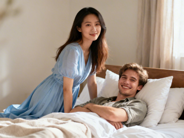 “You keep kissing there, but give me one hand,” she said with a smile. “I show you.”