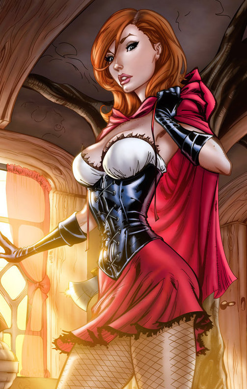 The lecherous gaze found the rising valley of Red’s heaving breasts, barely visible under her cloak. He stared as she turned towards her Grandma, bending at the waist over Grandma’s chair. The man’s eyes were fixed on Red’s smooth legs beneath her pleated skirt – her thighs were strong and firm. His tongue slid over his lips with an indecent thought when Red bent a little further, kissing her Grandma on the cheek.