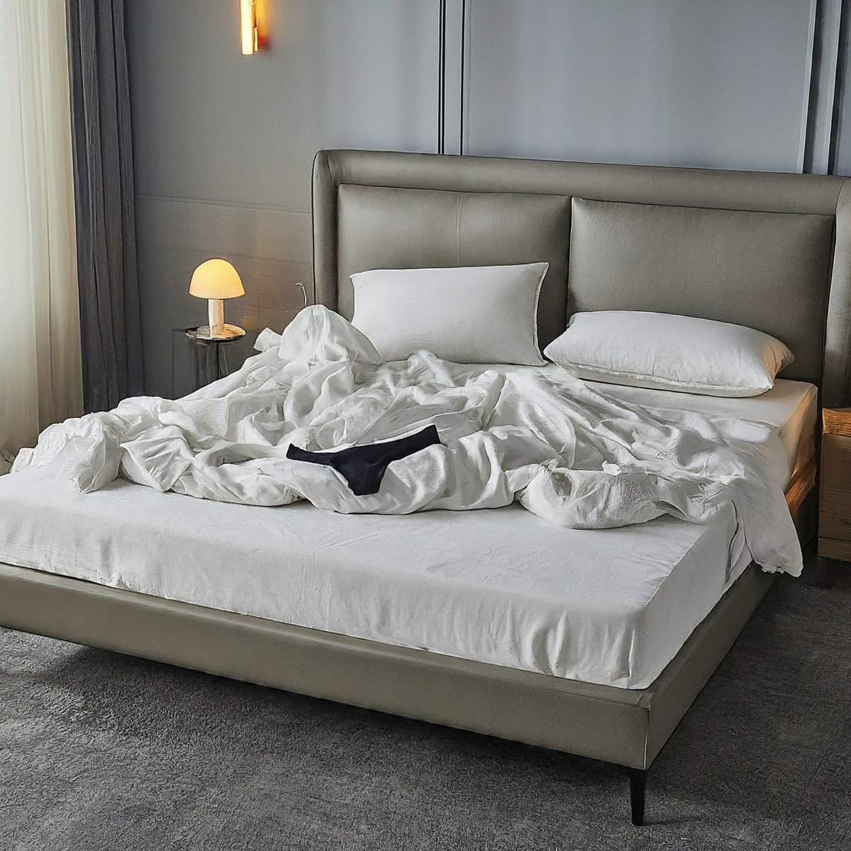 The bedroom is a haven of clean lines and muted tones. A king-sized bed, immaculate and inviting, dominated the space. Not a single wrinkle marred its surface. As Adrien gestures towards it, I can’t help but imagine myself sinking into its plush embrace.