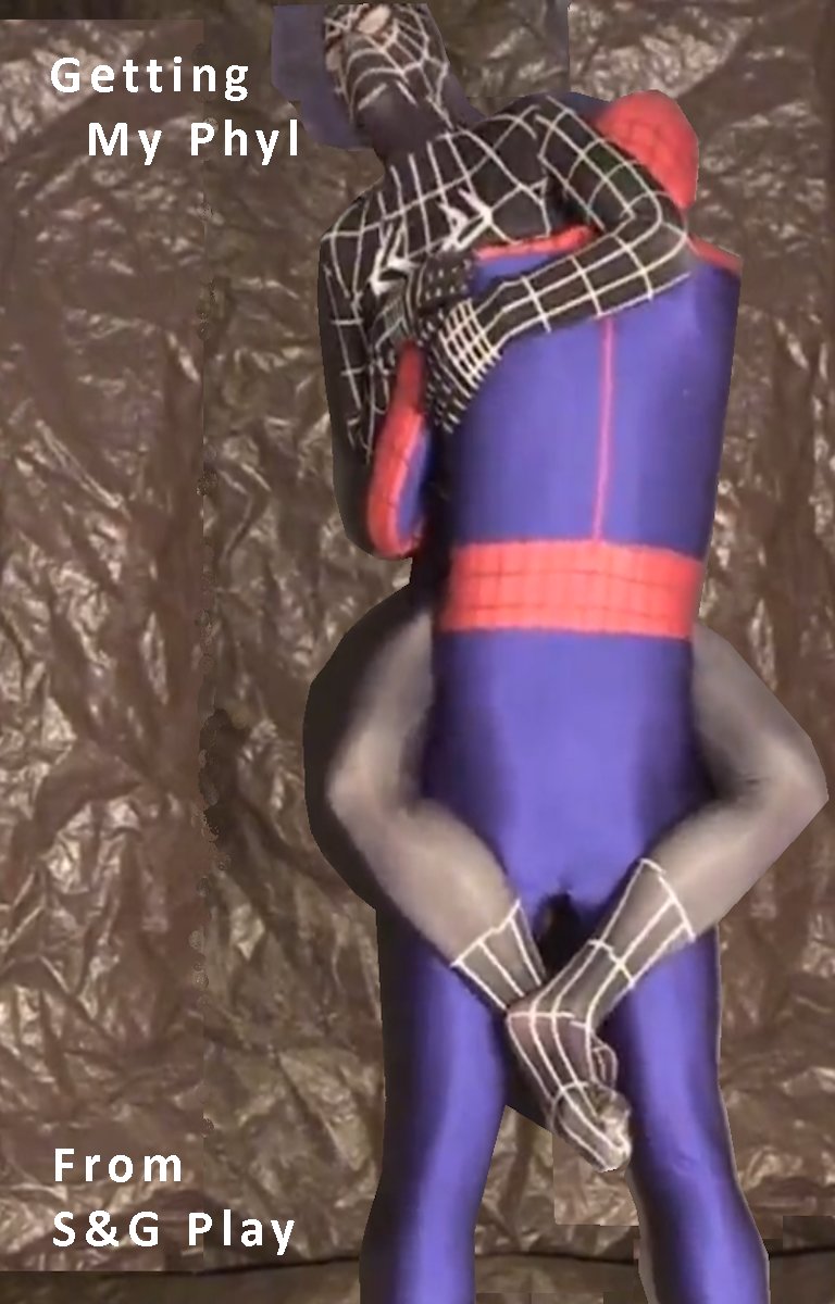 My first sight of Phyllis was mind-boggling. She was Spidergirl, but her costume was all black with a white web. Her boobs sagged down, but her nipples pressed deep into the fabric between her spider logo’s legs, and between her legs was a beautiful, proud cameltoe.