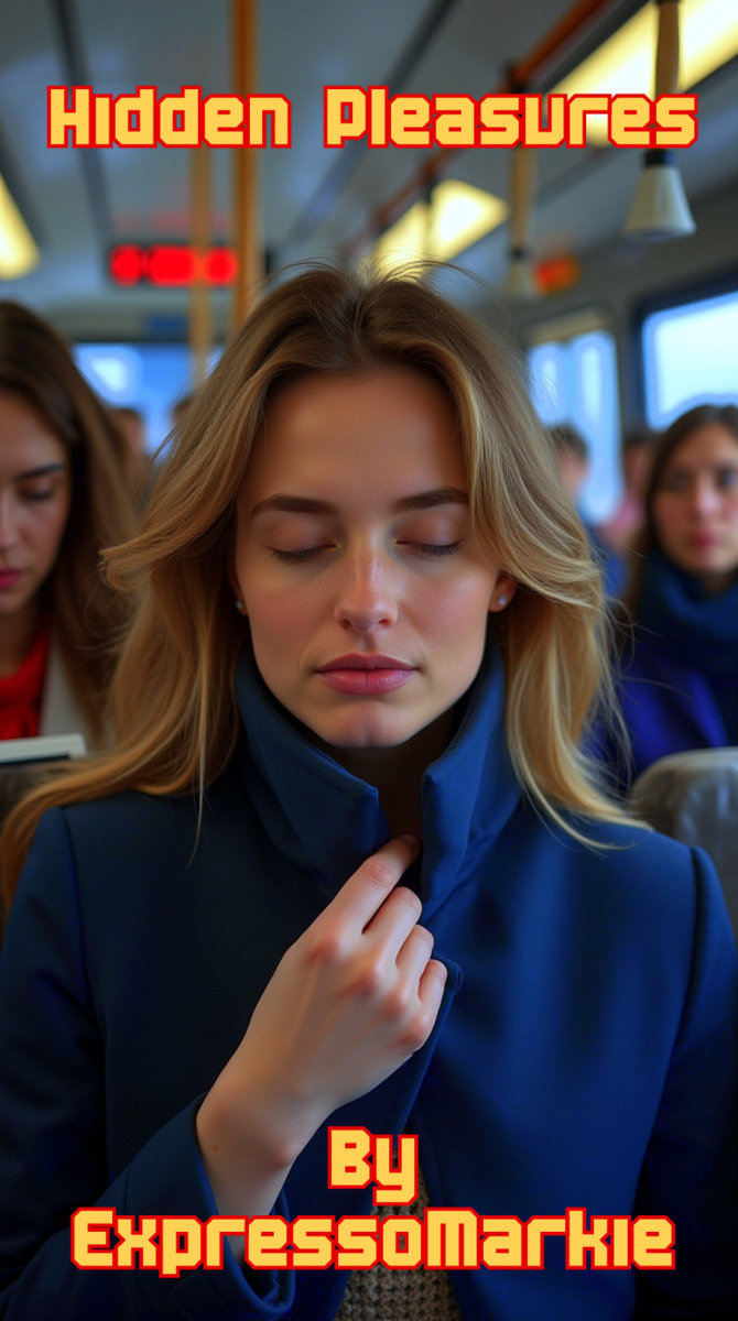 She slides her finger over the dampness of her underwear, rubbing gently, her movements subtle and hidden beneath the folds of her coat. It feels so good, a shiver runs up her spine, and electricity courses through her veins. Her breath hitches slightly, her heart quickens, and she can feel the warmth spreading through her body. The risk of it all makes it sweeter, the strangers nearby, the knowledge that she could be caught at any moment, the thrill of the forbidden, the taboo. She rubs a little harder, her movements careful and deliberate. She’s close, so close. Her thighs clench almost imperceptibly, her hips lift slightly, a dance of desire hidden beneath her coat. Her reflection stares back at her in the window, cheeks flushed with arousal and excitement. She bites her lip, suppressing the urge to moan, to cry out, to let the wave crash over her. Her heart races, she’s on the edge, desperate, needing.