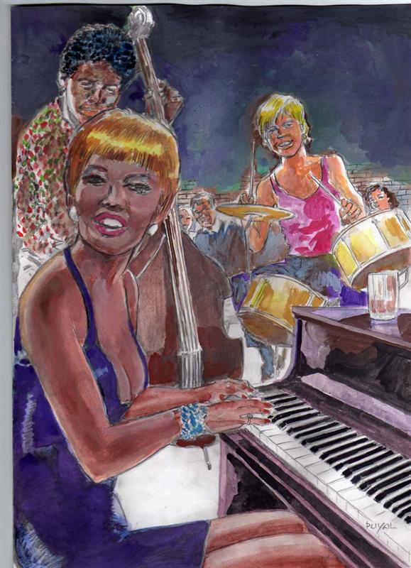Then, as is traditional at this stage in the gig, Lynn introduces her sidemen by name. As always it is Paul who gets the loudest yelps of appreciation. Lynn knows that it isn’t just his playing that earns the audience’s adoration but that natural love for his trade that shines from his eyes and his remarkably healthy teeth. If her daughter had been a dentist rather than an eye specialist, who knows how much admiration she would express for her sideman, whose only hours away from constant practise on the tool of his trade are spent in the uptown gym where he exercises his generously toned biceps.