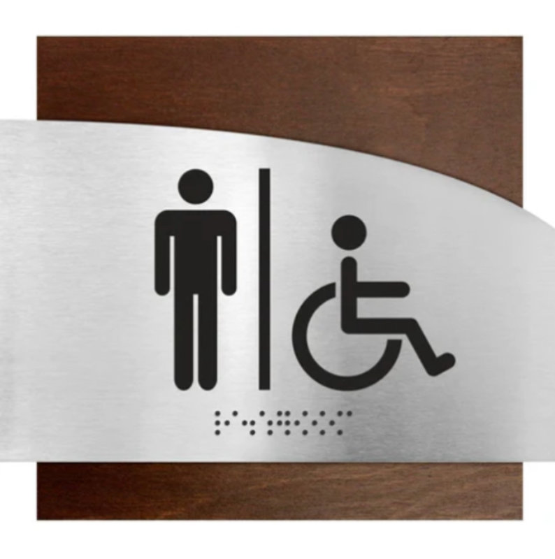 The men’s room was luxurious and could have been in a high-end hotel or restaurant. The heavy wooden door had a frosted glass insert and vintage brass hardware. Black subway tile extended half up the walls, with hunter-green faux bamboo wallpaper above. The sinks were copper and the countertop, soapstone. Best of all: three personal walled stalls with louvred doors.