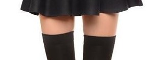 Her black mini skirt was pulled up the waist. Her legs, in black knit thigh-high stockings, were spread. And her panties were nonexistent.