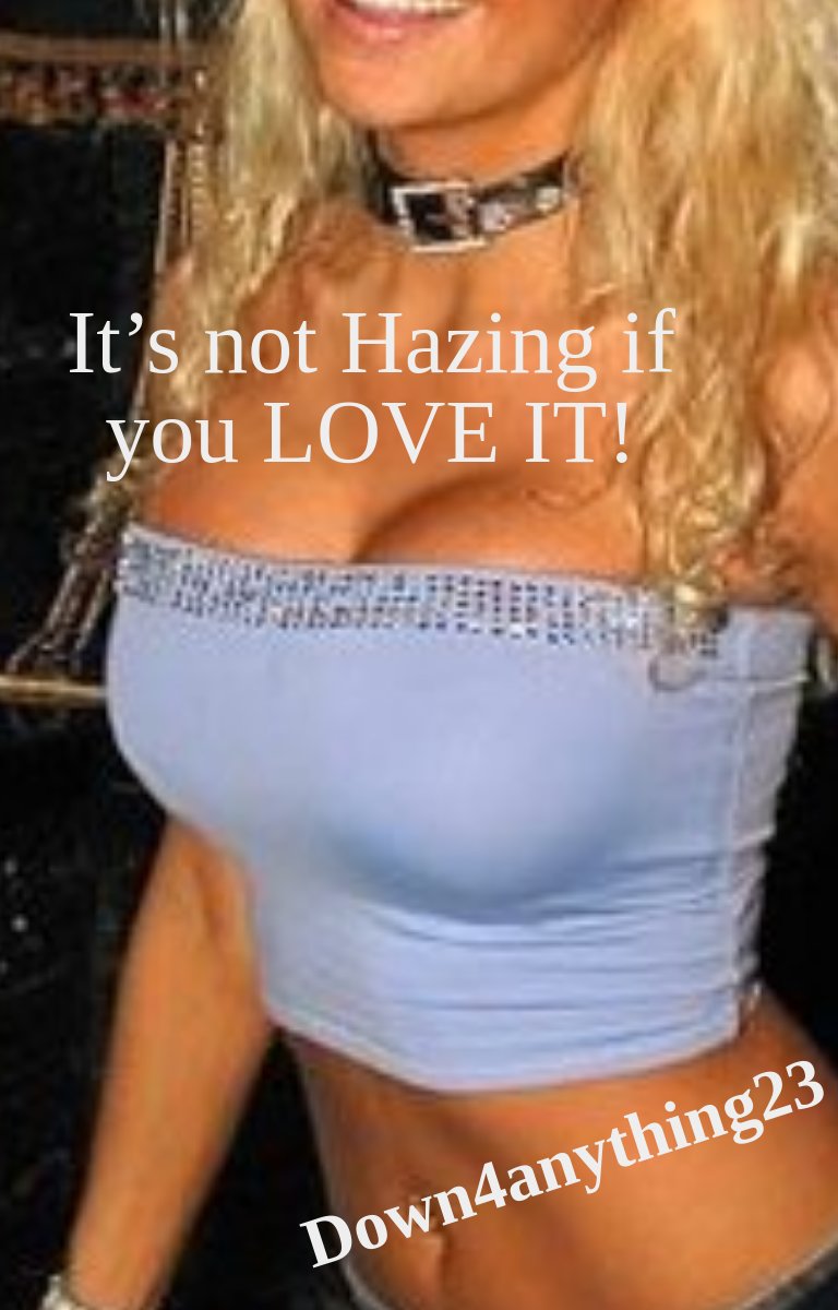 Honestly? As hazing goes, it was kind of juvenile, and the petite blonde powerhouse was bored. Still, she kept up her smile and silly giggles to fit in with the squeals of the others. At least having her exposed nipples grow hard made her feel some relief to the eighteen-year-old’s perpetual horniness.