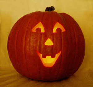 I carved out the eyes first. Two symmetrical triangles topped with a thin upturned ‘V’ for eyebrows. They looked great. Another triangle for the nose. And then, as I cut a slit to start the mouth – you know, the traditional gaping jagged jaws – something stopped me.