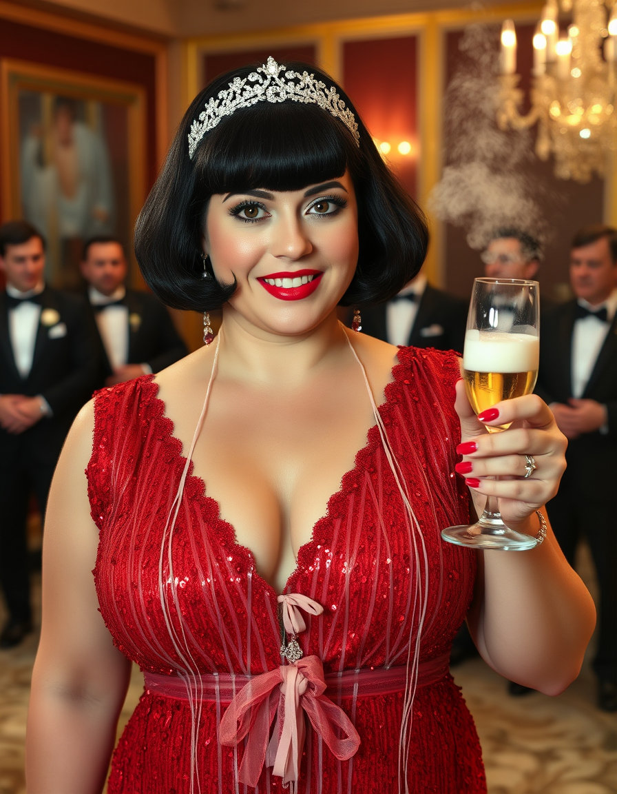 Harvey smiled. His wife looked truly beautiful tonight, he thought, from the tiara set on her black bobbed hair, to her rich brown eyes, to her bright red lips, and that was just from the neck up. “I’m sure that we can make this year into whatever we want. But right now, what I want is some champagne. I saw some waiters bringing it in just before midnight; I’ll go fight my way to the table.”