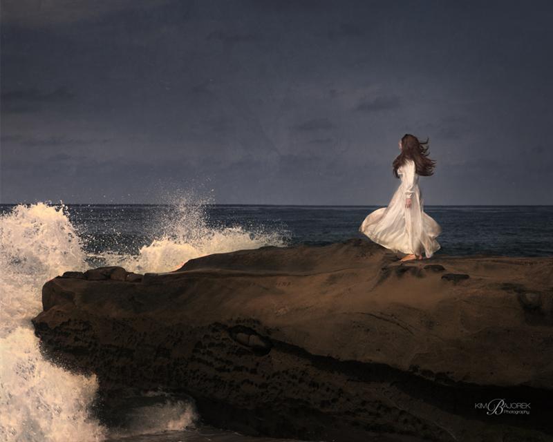 while the sun sinks lower towards the restless sea.