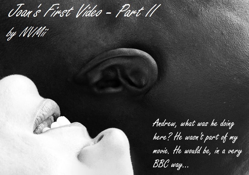 Alice tried to slip her skirt off, I stopped sucking and helped her. She wasn’t wearing panties, her body was now nude. We kissed a few more times before we moved into a 69 position. Alice was on her side, her leg raised up, her pussy inches from my lips. Alice raised my left leg upwards, my pussy was now exposed to her. Alice moved downwards until I felt her hot breath on my vulva. We were both in the perfect position to lick each others pussy. I felt Alice’s tongue on my clit. The ice had been broken, my best friend and I were having lesbian sex. My lips now surrounded her engorged clit. I sucked and licked her, she doing the same to me. I plunged two fingers into her. Her wet vagina allowing easy entry, I finger fucked her while her tongue licked my vagina opening. Alice’s fingers were pulling my pussy lips apart. Her tongue sliding up and down my moist slit. I mashed my mouth to her pussy, my tongue inside her opening. I lapped her juices into my mouth, swallowing, then licking more in. Alice was producing an abundant amount of pussy juice. I licked harder and fingered harder. I wanted to make Alice cum, a first for me. I noticed a change in Alice. She was sucking my clit very hard. Her tongue pressed hard as it moved back and forth on my button. Suddenly her thighs clamped on my head as her orgasm flooded through her body. I continued to suck and lick her. Alice relaxed her legs and pushed my face away from her pussy. “Too much… too sensitive… wait a bit.” Alice then went to work on my pussy. I felt the sensations of my orgasm stirring within me. Her tongue was caressing my clit. A quick nip of her teeth sent me crashing over the orgasmic cliff. I too clenched her head with my thighs. Alice kept licking and I crashed with another climax. Alice’s arms were tight about my waist, holding her mouth tight against my clit as she sucked and licked. “Please stop… I’m too sensitive!” I was gasping for air. Alice obeyed my wishes. I swung my leg away and lay on my back. Alice sat back up, she bent over and kissed me. I could taste myself on her lips and I’m sure she could taste herself on mine. Our tongues danced with each other for a short time, then we parted. We laid together, looking into each others eyes. Alice moved her hand to my slit. I raised my leg so she could slide her fingers inside. She did the same, my fingers finding a very hot wet pussy. We looked into each others eyes as we fingered each other. I pulled my fingers out of her and brought them to my mouth. I sucked her juices off and then plunged them back into her. I did this a few more times before we kissed again. We both looked up when we felt someone on the bed. It was a naked Anthony, his hard humongous cock waving in the air. “Fuck her Anthony,” I said, pointing to Alice. “She hasn’t had a black cock today.” I watched the foreplay between them. The kissing led to Alice sucking his cock. Anthony’s fingers were working her pussy. I had forgotten about the cameras, but they were there. Alex and Jack filming while Don was handling the overhead mic. Alice lay back and spread her legs, her labia glistening in the light. Anthony positioned himself, his cock resting on her pussy lips. His cockhead was covered and slick with his pre-cum. He slid his cock up and down her slit, stopping at her opening. Alice tried to pull him forward, but all she did was slide closer to his cock. I watched as her lips spread. Anthony pressed forward, impaling my friend on his immense rod. Alice’s pussy lips spread encircling his cockhead. The thick black mushroom head disappeared inside my friends wet cunt. Alice had no problem taking Anthony’s thick cock. I had problems with Devon’s size until I was stretched out. I do believe my friend Alice has been cheating on her husband. I’d bet my last dollar she and Andrew are fucking each other. Anthony fucked her missionary style for quite some time. Then he rolled her over so he could fuck her doggy style. Again I watched as he fucked his big pole into Alice. I wanted in on the action, so I slid under Alice so I could lick her clit. Alice pulled my ass over so she could eat my pussy. We went 69 until we both had great orgasms. Anthony was pounding her pussy hard, he was getting close. Alex had his camera taking closeup video. Anthony pulled his cock almost out of Alice as he climaxed. I was fascinated as I watched his cock throb and twist. He pumped his hot cum into my friend. When he was done cumming he pulled his cock out. I slid down hitting my forehead. I moved into position to catch Anthony’s cum as it leaked from Alice’s pussy. Several globs landed in my open mouth, which I hurriedly swallowed. Alice spread her knees, lowering her pussy so I could lick and suck her dry. I did my best and cleaned her pussy very well. I took hold of Anthony’s cock and sucked the few last dribbles of his cum. I cleaned Alice’s hot foamy juices, leaving his black cock shiny and wet with my saliva. Anthony got off the bed and moved out of my sight. That is when I saw Andrew standing at the foot of the bed. He was looking back and forth at Alice and me, like he couldn’t make up his mind which woman to fuck. Alice piped up, “Fuck her Andy, Devon has reamed her out, she should be able to handle you.” That was when I sat up and looked. Andrew’s cock was big, no, it was humongous. There was no way that thick cock would fit in my small pussy. “No way,” I exclaimed, shaking my head no. “That is way to big. It’ll tear me apart.” Alex whispered into my ear, “Come on baby, please try, it will make for good video. Alice can take it, I’ll bet you can too. Will you at least try? I’ll make sure to take close ups.” If my husband Alex wanted me to try to fuck such a huge cock, I guess I’d try. I shook my head in the affirmative. Alex smiled, he looked at Andrew, “Take it easy on her, she’s never had a cock that large.” Andrew climbed up on the bed.