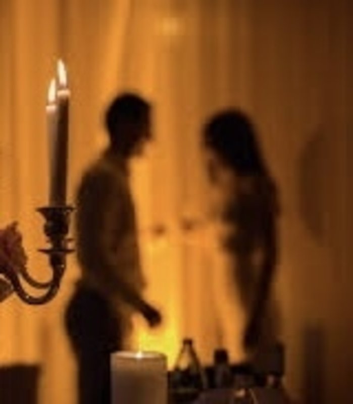 I started to strip off my wet clothes and noticed that the house was only lit by candles. I pulled my shirt off over my head and took off my bra. Just then Steve appeared in the doorway of the bathroom, holding some dry clothes. I quickly crossed my arms to cover my bare breasts. My heart was pounding. As I looked at him, I could see a bulge in his pants. He apologized and I bit my lower lip slightly. I thanked him for the clothes, and he turned and walked away. I unbuttoned my jeans and pulled them off. Then I slid my wet panties off. I heard Steve walking back to the bathroom. I didn’t cover myself that time.