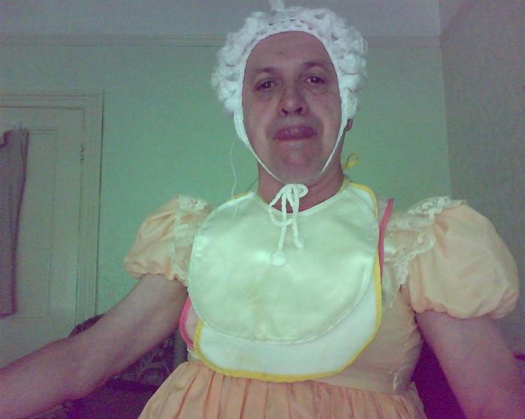 Alan gurgles and dribbles down his chin. His speech has disappeared. He is a helpless baby-girl with mummies who want to humiliate him to the extreme.