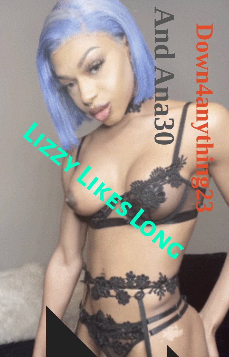 Lizzy lifted her hips and sexily slid off her thong and tossed it to the side. She spread her legs wide and used her forefinger to slide up and down her wet folds. I groaned and smiled, then licked my lips. It was very diva, but I loved it. “Someone is a needy little thing,” I growled. I grabbed my own panties and slid them down. My nine inches bounced into view, giving notice. She grabbed it with both hands and began to stroke as I tossed my panties on top of hers. We were going to have so much fun.