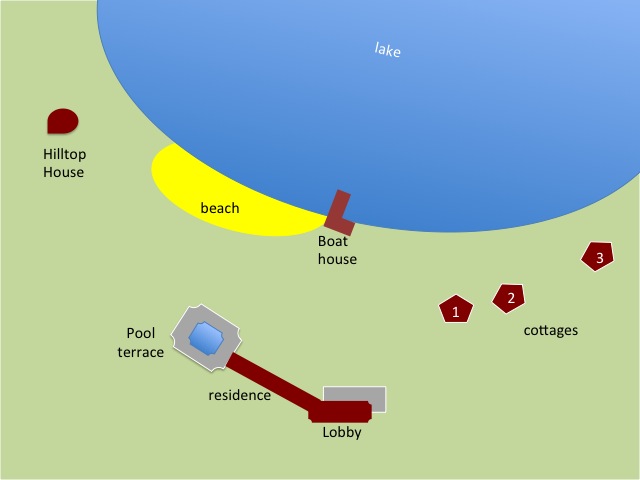 She stepped out on the small balcony and saw over the neatly cut grass to the lake.